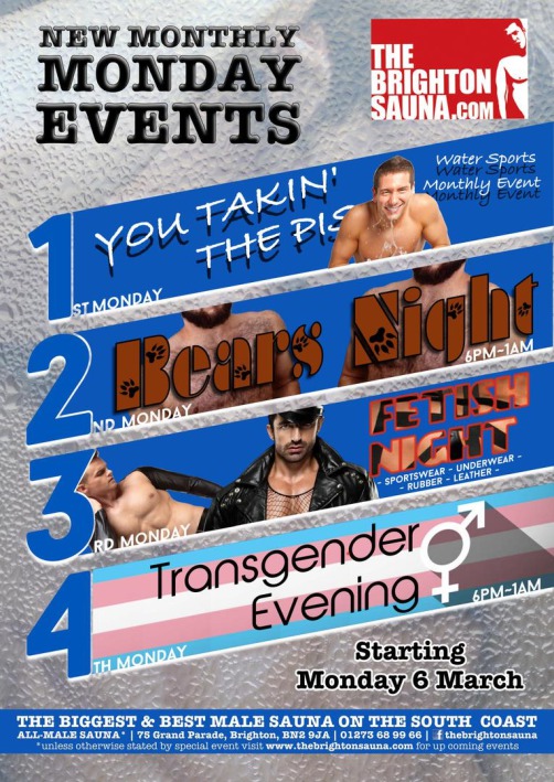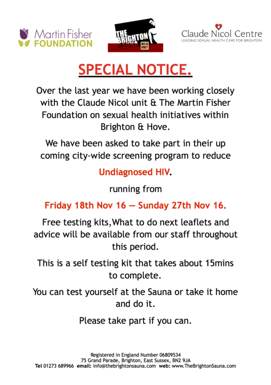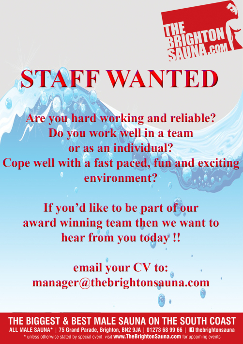 YOU MAYBE SUBJECT TO A SEARCH WHILE ENTERING THE BRIGHTON SAUNA, PLEASE DONT BE OFFENDED THIS IS FOR EVERYONES SAFETY AND PART OF OUR LICENCE CONDITIONS.